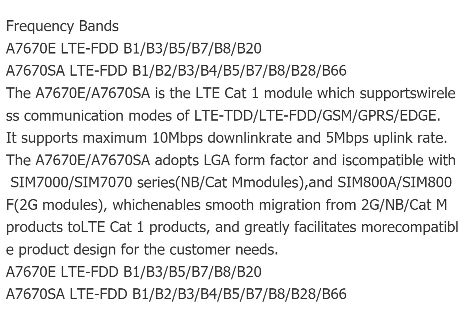 A7670E Full SIMCOM 4G Cat 1 with GSM GPS BK-A7670E